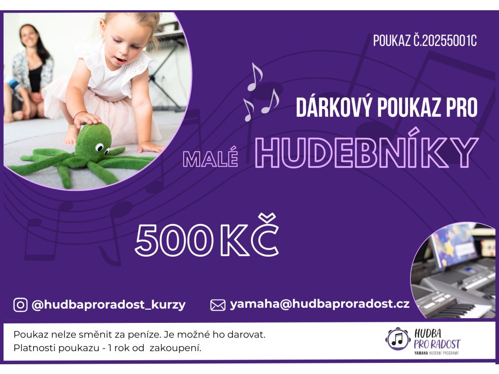 Darujte radost z hudby! Dárkový poukaz na kurzy Hudby pro radost – platnost 1 rok.